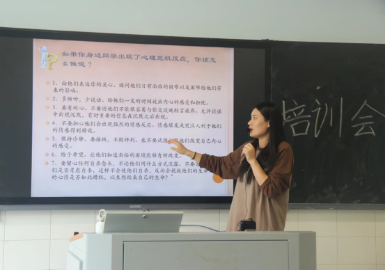 为进一步提高员工的心理健康素质,提升信息员心理危机识别与干预能力,4月2日中午,伟德国际1946bv官网心理专干刘洁老师组织伟德国际1946bv官网各班级心育委员、宿管委员进行了《心理危机识别与干预》专题培训,培训从信息员队伍的角色及职责、心理危机的定义、心理危机的识别、心理危机的干预四个方面进行了理论科普及实践指导。