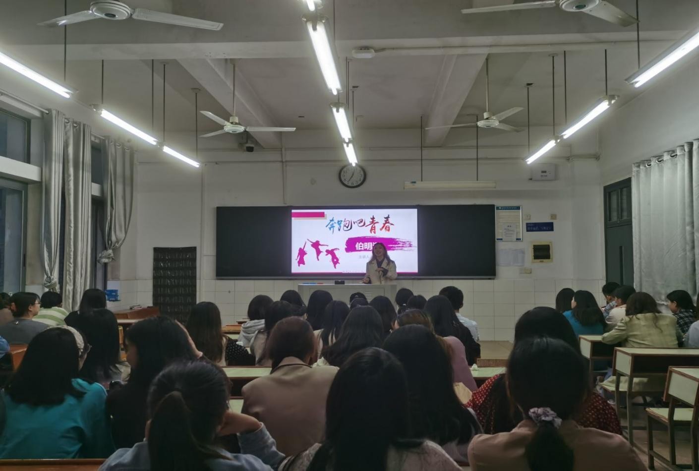 宣讲会上,伯明汉的招聘人员就当前的教育市场现状进行了分析,指出公司的市场定位与优势,并分享员工的工作、生活环境,展现公司的人文关怀与企业文化。公司主要设有授课老师,市场推广和助教等职位,招聘人员对各个职位的人才要求、薪资水平和职业发展前途进行了详细的说明。宣讲结束后,伯明汉的招聘人员组织有意向参加下一轮面试的同学建微信群,以便进一步的沟通交流。