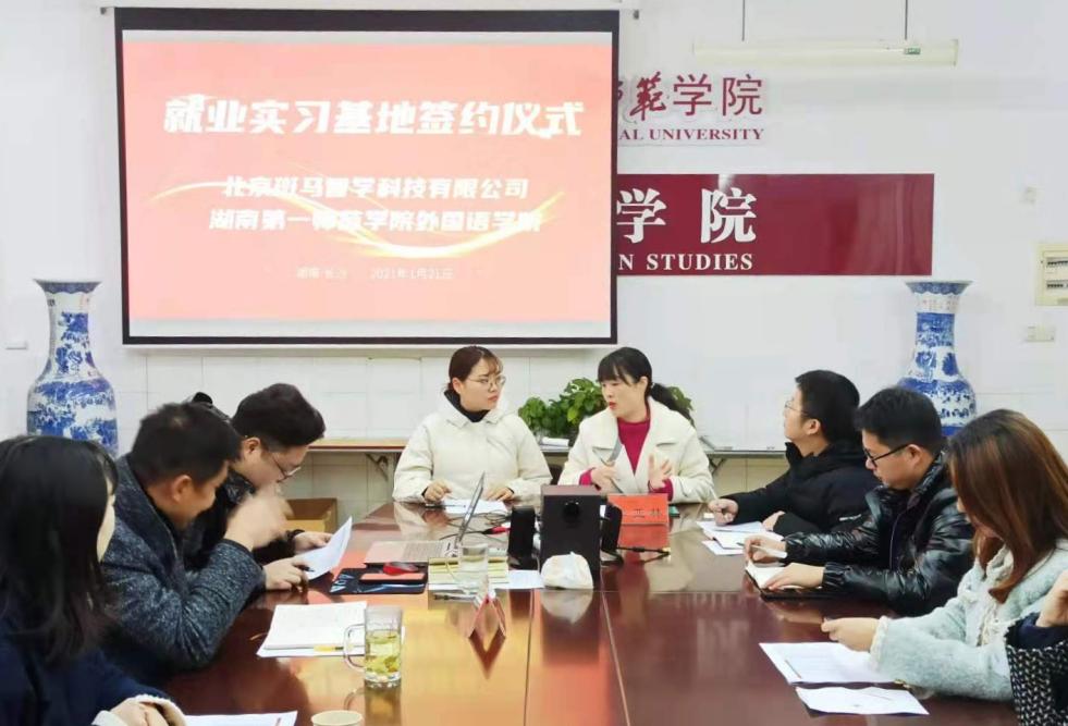 2021年1月21日上午,公司与北京斑马智学科技有限公司签订了校企合作实习就业基地协议。公司党总支书记李亚林、党总支副书记杨虎智、北京斑马智学科技有限公司长沙分公司人力资源经理郎苗苗,以及双方代表等共13人参加签约仪式。