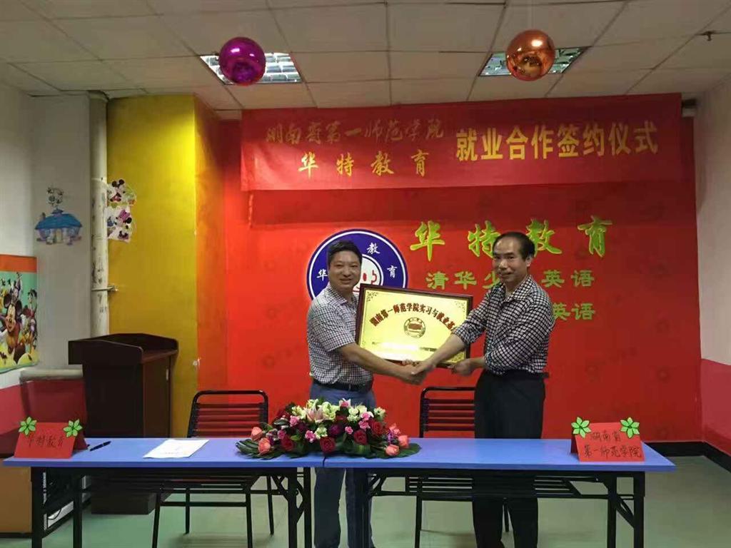 刘祥清经理重点介绍了公司的办学特色、专业设置、英语师范生培养等方面基本情况,对华特教育对公司毕业生实习就业工作的大力支持表示感谢,对王浩平董事长的建议表示认同。刘经理指出,华特教育办学历史悠久、办学特色鲜明、团队力量雄厚、教学成绩显著,培养了大批优秀的少儿英语人才,在基础教育领域有很大影响,与华特教育签订实习与就业基地建设合作协议是公司开拓和建立毕业生就业基地的重要举措。