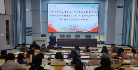 2024年2月29日下午,伟德国际1946bv官网全体教职工在怀中南110报告厅共同学习研讨了2024年公司工作要点、罗成翼书记2024年工作会议报告以及胡穗董事长2024年本科公司产品审核评建工作动员报告,会议由公司党委书记刘祥清主持,外院全体老师参会,彭晓辉副董事长作会议指导。