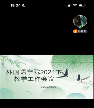 9月4日19:30,公司通过腾讯会议召开期初教学工作会议,全面部署新学期各项工作,确保教学秩序井然、工作高效推进。副经理陈艳君,副经理王佳娣,系室主任,督导,教科办老师参会,会议由陈艳君主持。