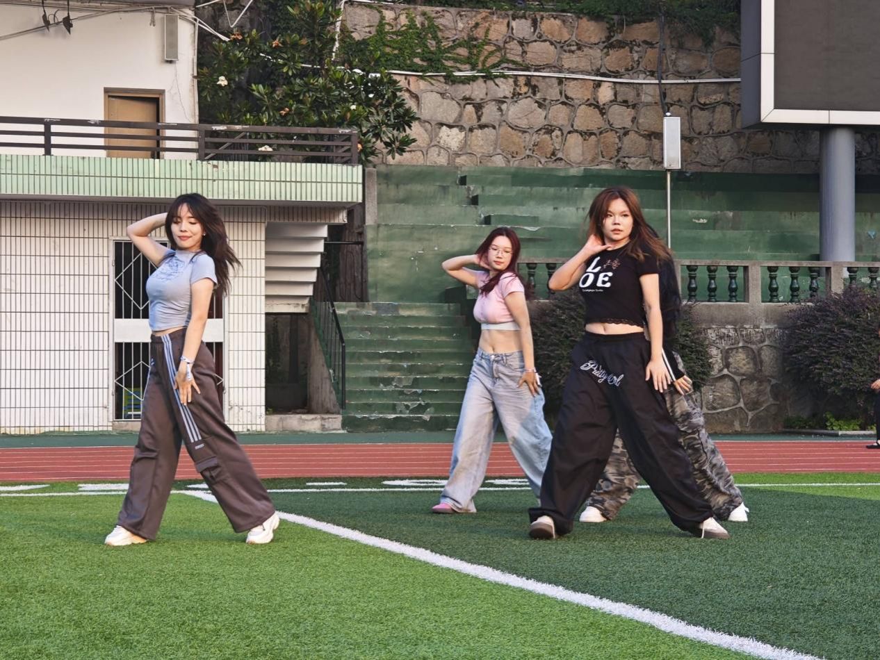 主持人领唱《See you again》等经典曲目,荧光棒随节奏挥舞,同学们的歌声汇聚成青春音浪。来自不同班级的同学接力随舞,同时工作人员用泡泡机营造梦幻舞台。其中,杨俪和胡紫晨为大家表演了精彩的《Like Jennie》,音乐一响,现场立刻沸腾。英语歌与舞蹈交织,打破班级界限,把户外场地变成自由释放的狂欢场。