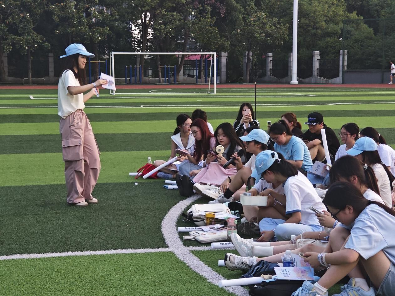 6月6日下午,24级英语润之英才班在城南校区田径场举办第六次英语角活动。作为一年级收官之战,本次活动以 “Kick the Blue, Seize the Sound” 为主题,融合户外音乐互动、英语交流,班主任周敏老师、综合英语课程任课老师李双、语法课程任课老师唐江英、学业导师李满红出席,为一年级青春画下独特句点。