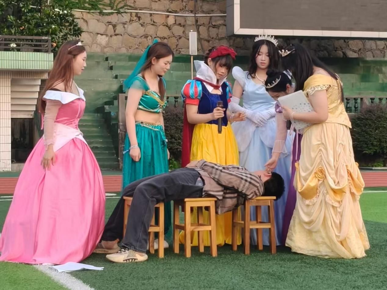 此次英语角特邀商公司同学带来迪士尼公主主演的舞台剧。男主泰德曾质疑真爱、蔑视童话,公主们以梦境扭转其观念。表演借英语对白推进,让观众在剧情里重新思考 “真爱与自由”,公主们的真诚诠释,收获满场掌声,也让英语表达融入故事内核。