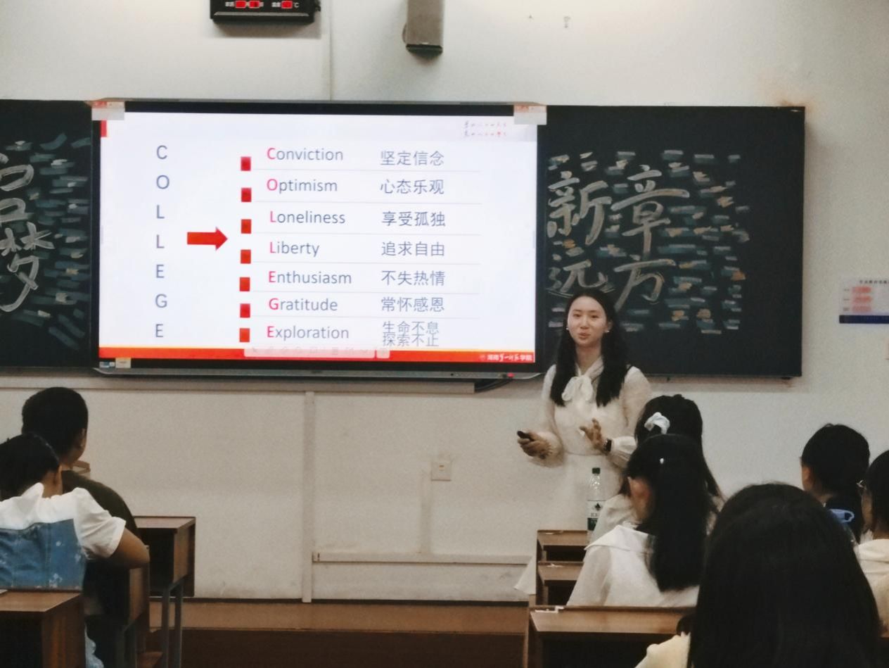 蒋倩老师还向同学们提出殷切期望,并布置了一项特别任务——撰写“大学四年成长目标书”,旨在引导同学们尽早明确方向,以规划促行动,书写充实而精彩的老员工活。她鼓励大家以积极心态面对未来挑战,保持内心的从容与开放,在变化中成长,在磨砺中坚强。