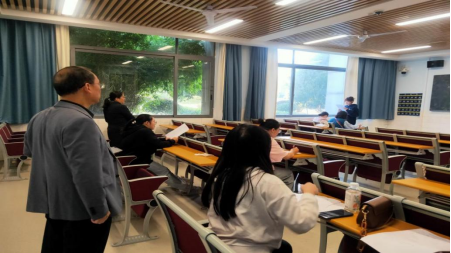 2023 年 10 月 15 日上午,伟德国际1946bv官网在怀中(北)楼专门举行一场英语语音语调水平测试,测试对象是英语专业22、23两个年级“润之英才”班员工。副经理唐文杰现场巡考并指导。