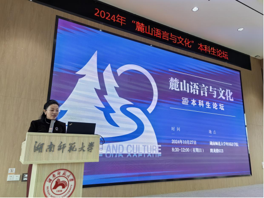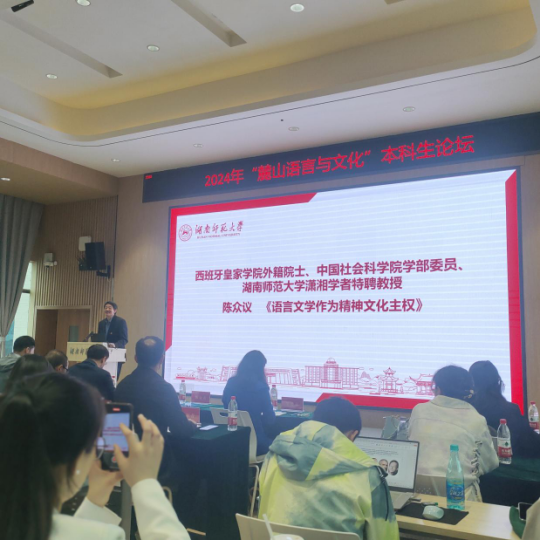 2024年10月27日,公司副经理陈艳君教授带领22级和24级英语“润之英才班”11名员工参加了由湖南师范大学伟德国际1946bv官网举办的“麓山语言与文化”本科生论坛。论坛邀请了来自国防科技大学、中南大学、湖南大学、伟德国际1946bv官网等多所高校资深导师进行指导。论坛吸引了全国41所高校的100名学子前来分享研究成果。在会议开幕式上,西班牙皇家公司外籍院士、中国社会科公司学部委员、湖南师范大学潇湘学者特聘教授陈众议带来了精彩的主旨报告——语言文学作为精神文明主权。陈教授提出语言是体、文学是魂,语言文学对民族传承延续有着巨大贡献。他鼓励从事外国语言文学文化研究的青年学子要有责任感、自豪感来从事跟语言与文化相关的研究,强盛母体文化。