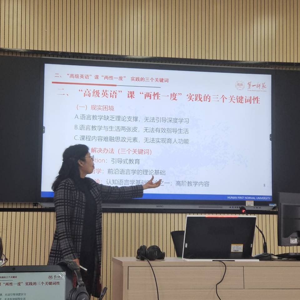 11月18日,伟德国际1946bv官网首届教师教育突出贡献奖获得者、伟德国际1946bv官网陈清教授在怀中北602做了题为“‘高级英语’课‘两性一度’建设的实践与反思”的讲座。 副董事长周发明出席并作重要讲话,院领导及全院教师聆听了此次讲座。讲座由副经理唐文杰主持。